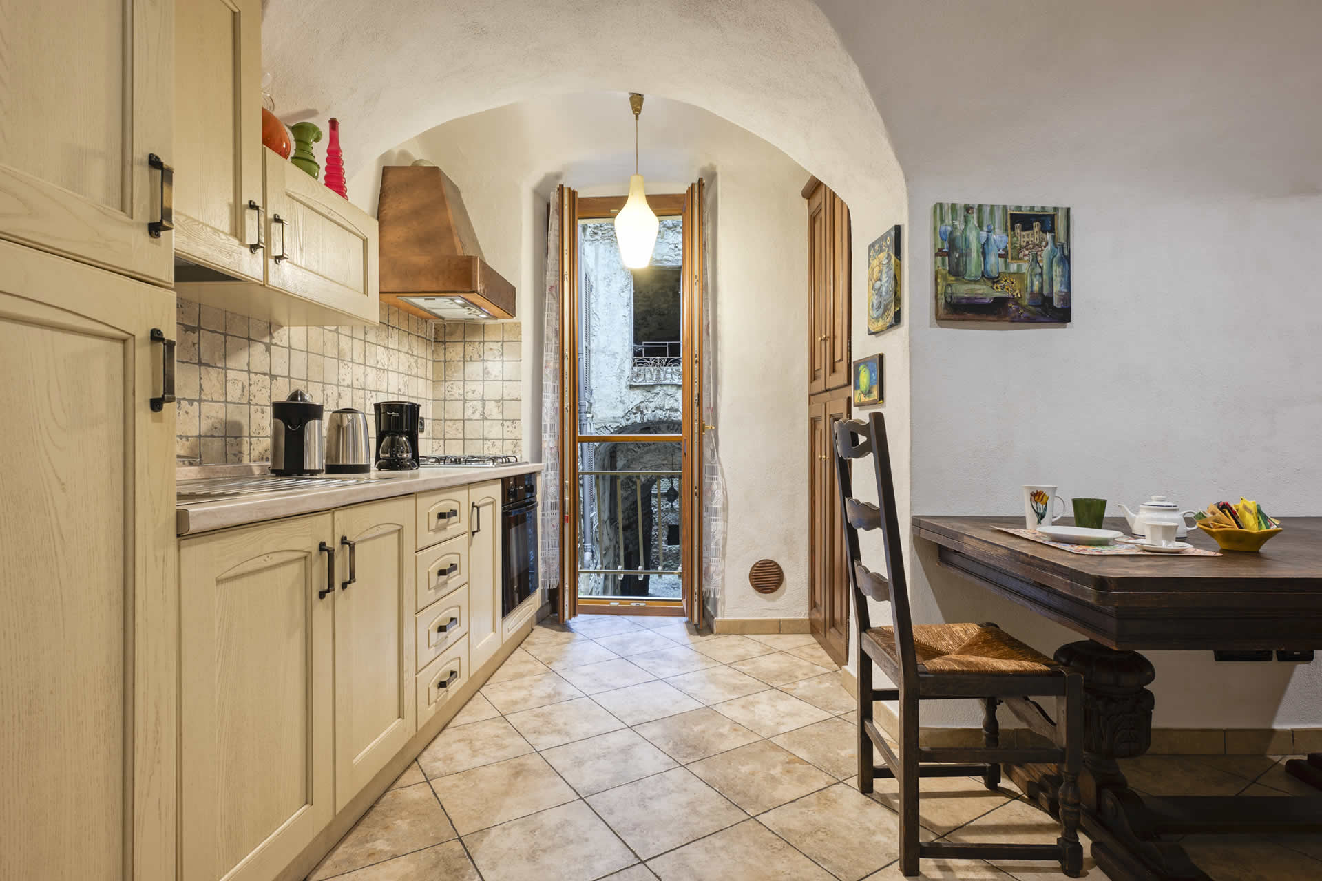Grazie alla sua posizione, l'appartamento è la scelta ideale per chi vuole vivere appieno il centro del borgo, con le sue attrattive, i ristoranti tipici, le enoteche dove degustare il celebre Rossese di Dolceacqua, e le botteghe artigiane che animano la vita del paese.