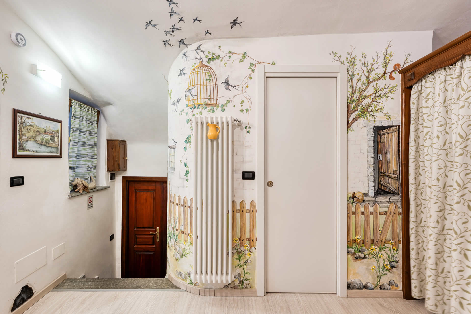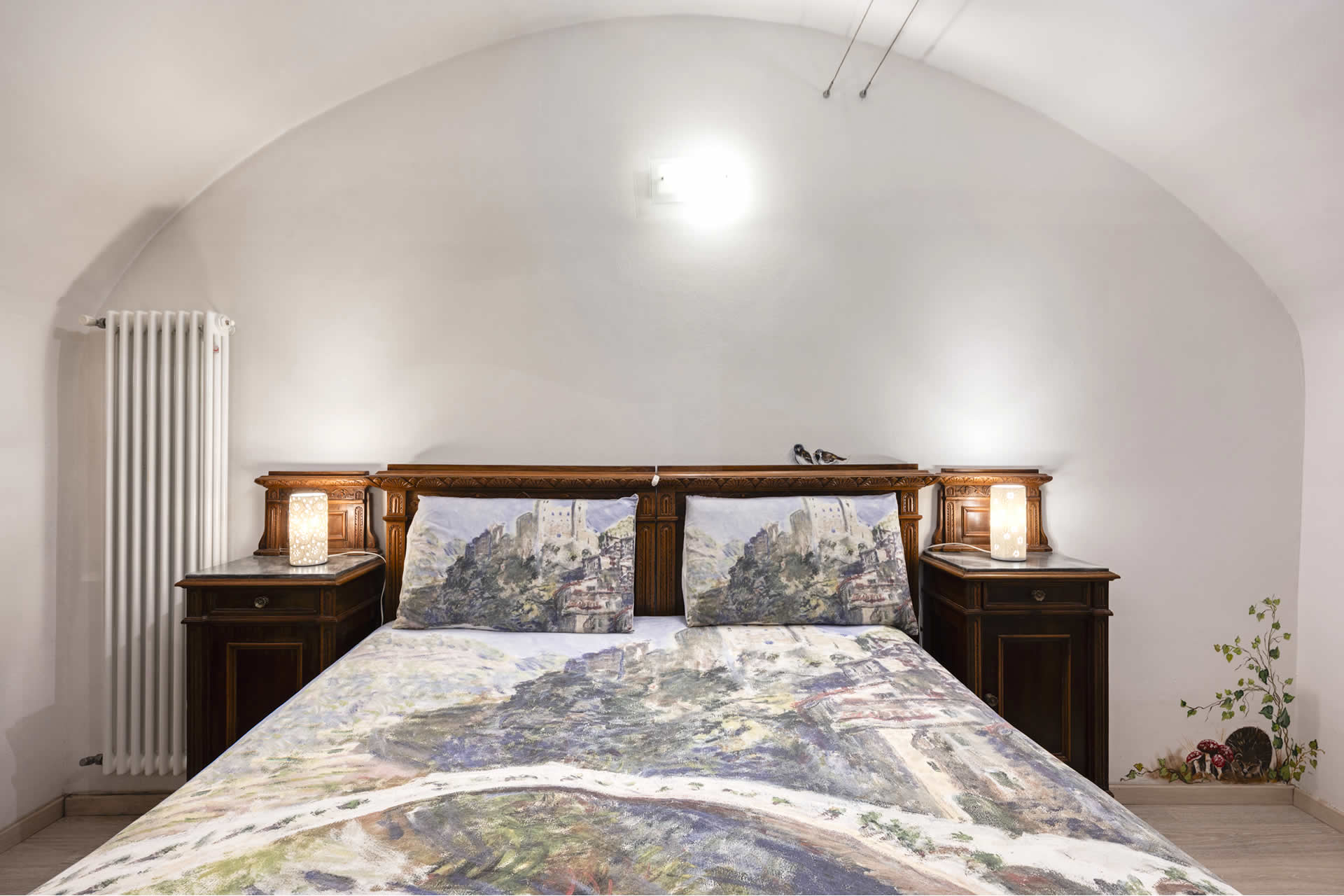 Nel cuore del borgo medievale di Dolceacqua, con ingresso diretto dal caratteristico carruggio, l'Appartamento Le Rondini accoglie gli ospiti in un ambiente intimo e suggestivo, dove arte e comfort si fondono. Le pareti, decorate da una nota artista locale con motivi floreali e il delicato volo delle rondini, donano all'alloggio un'atmosfera unica e poetica.